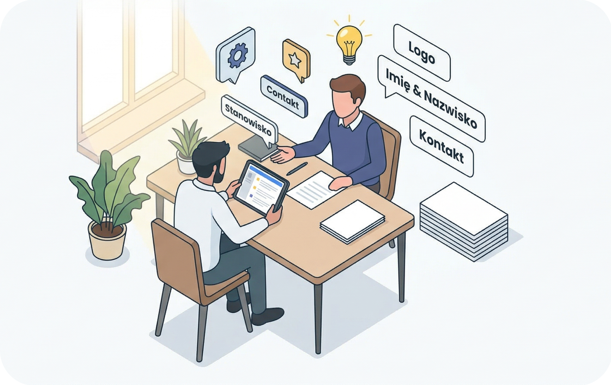 Zaczynamy od zebrania wymagań. Ustalamy, jaki ma być styl wizytówki i jakie dane kontaktowe (imię, nazwisko, stanowisko, telefon, e-mail, logo) są niezbędne. To fundament całego projektu, który zapewni spójność z wizerunkiem Twojej marki.
