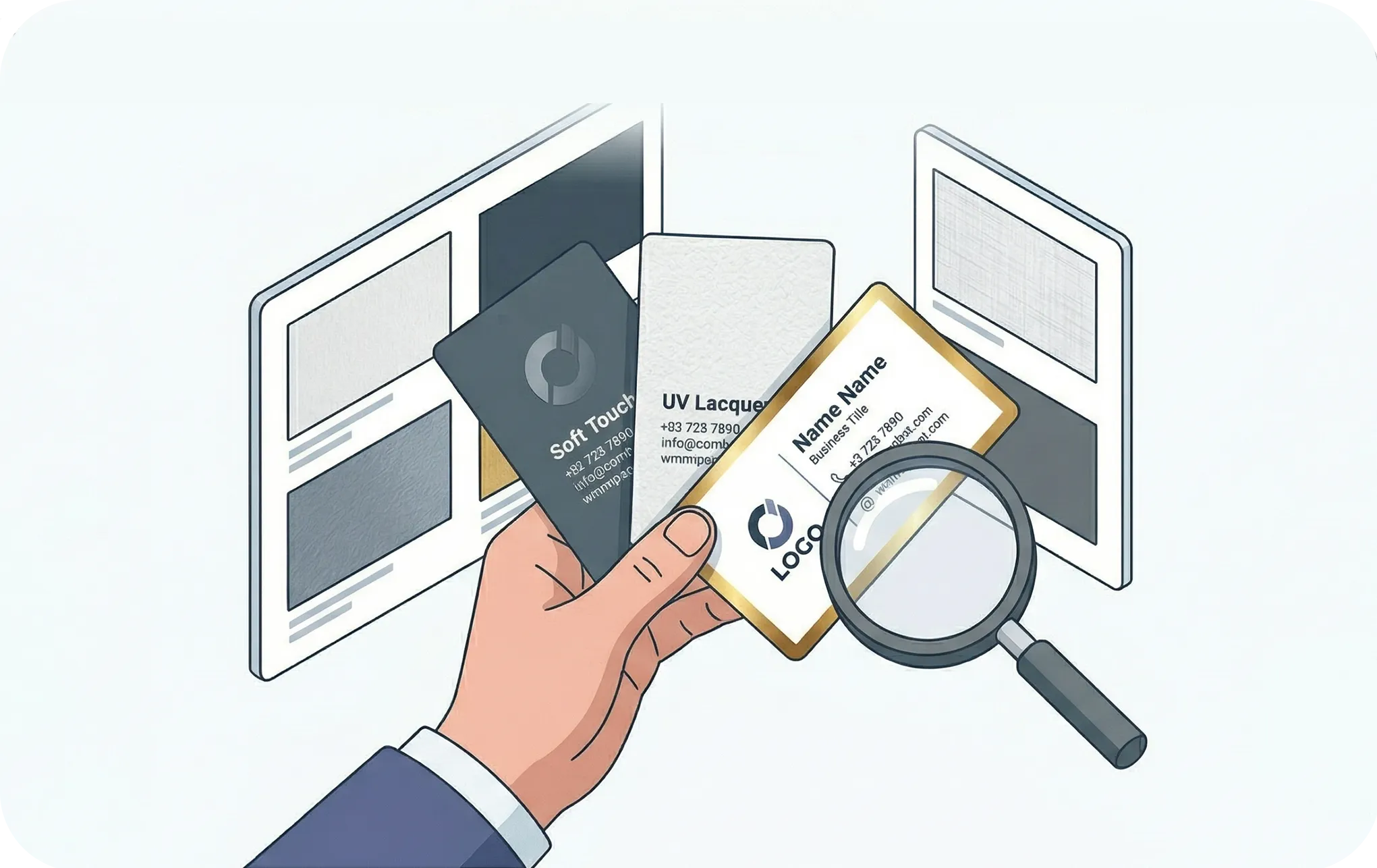 Wygląd to nie wszystko – liczy się też dotyk. Dobieramy odpowiednią gramaturę i rodzaj papieru (np. matowy, z fakturą, ekologiczny). Decydujemy o opcjonalnych uszlachetnieniach, takich jak folia Soft Touch, lakier wybiórczy UV czy tłoczenie (złocenie), aby wizytówka zapadała w pamięć.