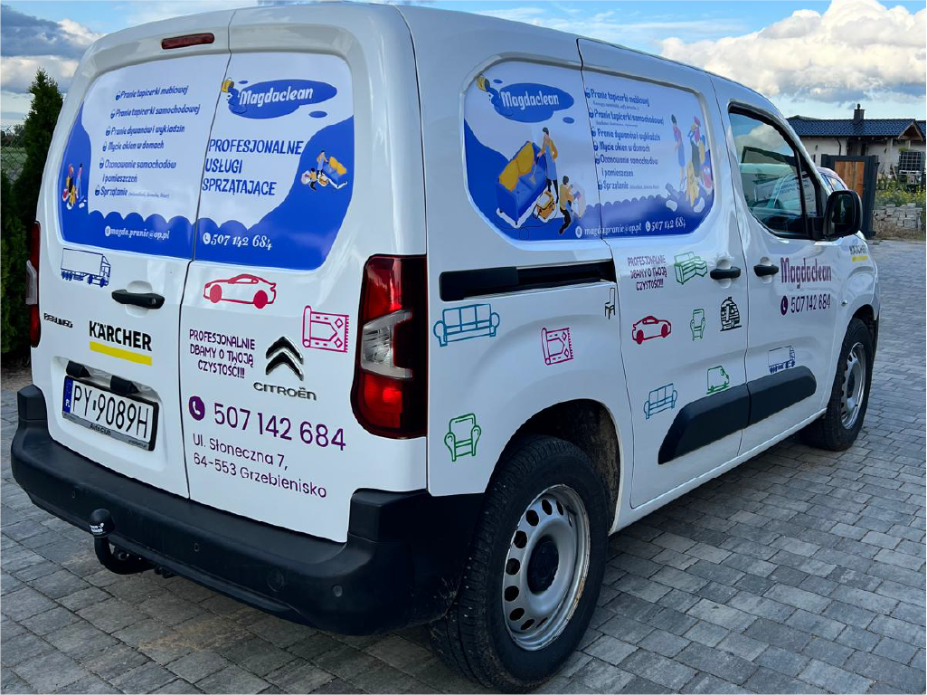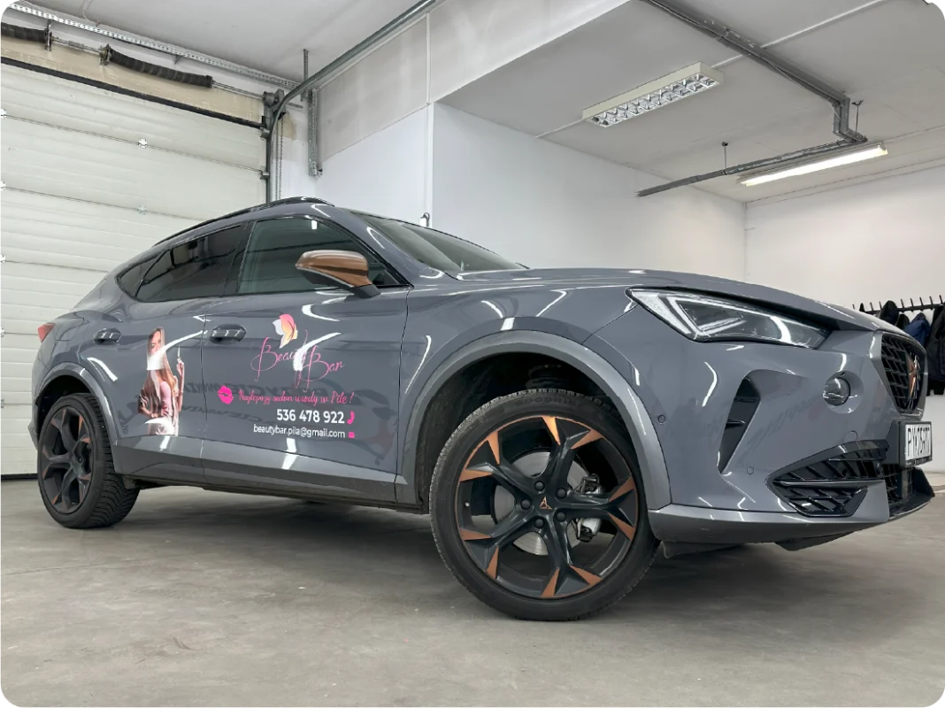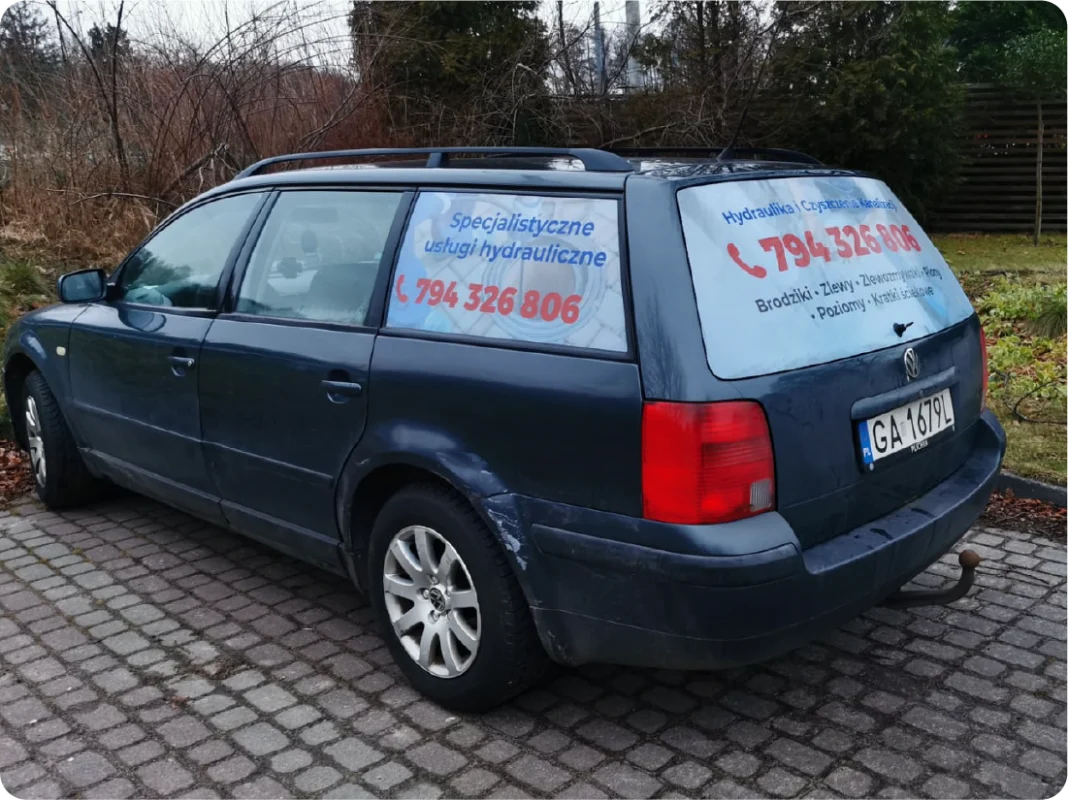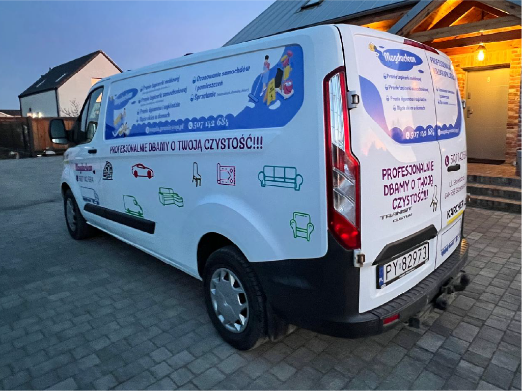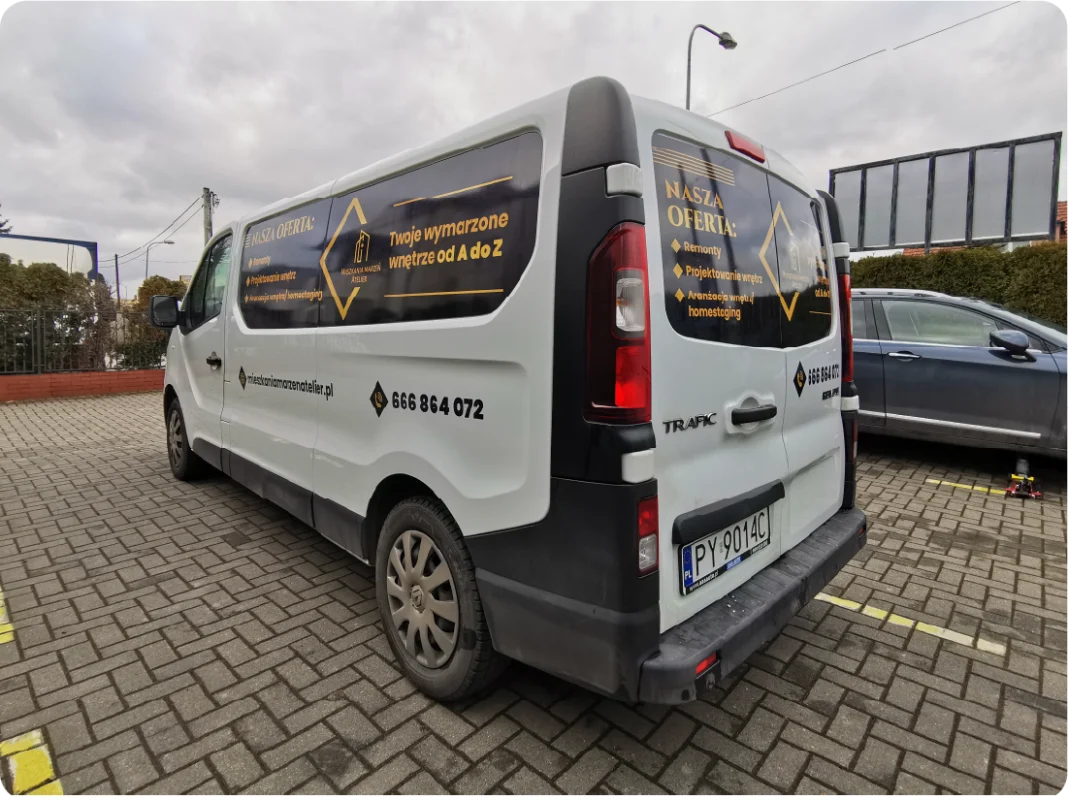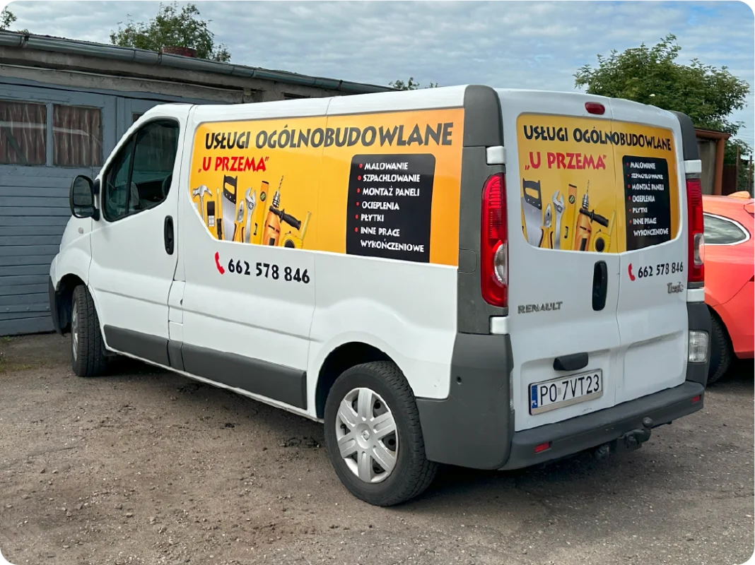 Specjalizujemy się w kompleksowym oklejaniu pojazdów firmowych i prywatnych. Zajmujemy się wszystkim – od projektu graficznego, przez dobór materiałów, aż po precyzyjne wykonanie i montaż. Tworzymy oklejenia, które nie tylko świetnie wyglądają, ale przede wszystkim skutecznie promują Twoją markę na drodze. Niezależnie od tego, czy chcesz subtelne oznakowanie czy pełne oklejenie – przygotujemy rozwiązanie dopasowane do Twoich potrzeb i budżetu.