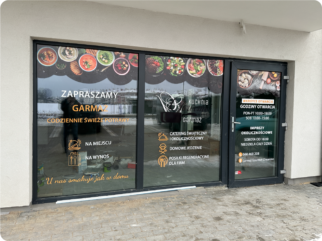 Reklama na witrynie to jedna z najbardziej niedocenianych, a jednocześnie najskuteczniejszych form promocji lokalnego biznesu. Szyba Twojego lokalu to doskonałe, widoczne miejsce reklamowe – i co najważniejsze: już za nie płacisz.