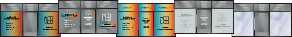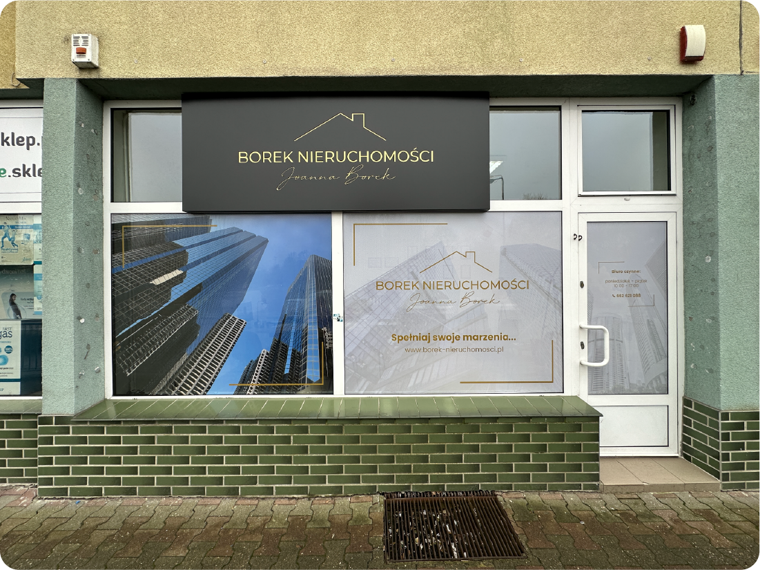 Oferujemy kompleksowe oklejanie witryn sklepowych, biurowych i usługowych. Od projektu graficznego, przez produkcję, aż po profesjonalny montaż – wszystko realizujemy od A do Z. Tworzymy oklejenia, które nie tylko chronią i zdobią witrynę, ale przede wszystkim przyciągają uwagę i zachęcają do wejścia. Niezależnie od tego, czy potrzebujesz eleganckiego oznakowania, promocji sezonowej czy pełnej grafiki reklamowej – dopasujemy rozwiązanie do Twojej przestrzeni i celów biznesowych.
