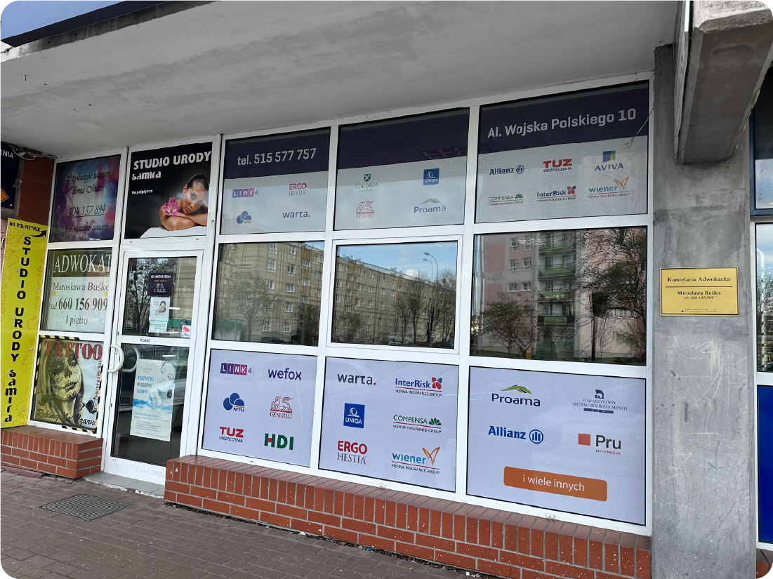 Jednorazowy koszt inwestycji w profesjonalną reklamę na witrynie zaczyna się od ok. 800 zł, a średni koszt to ok. 2500 zł netto – w zależności od wielkości i rodzaju materiału.