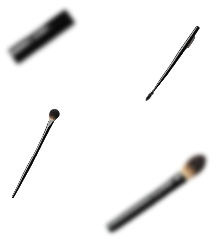 Potykacz reklamowy. Stojak informacyjny z grafiką pędzli do makijażu, sprzedaż profesjonalnych produktów.