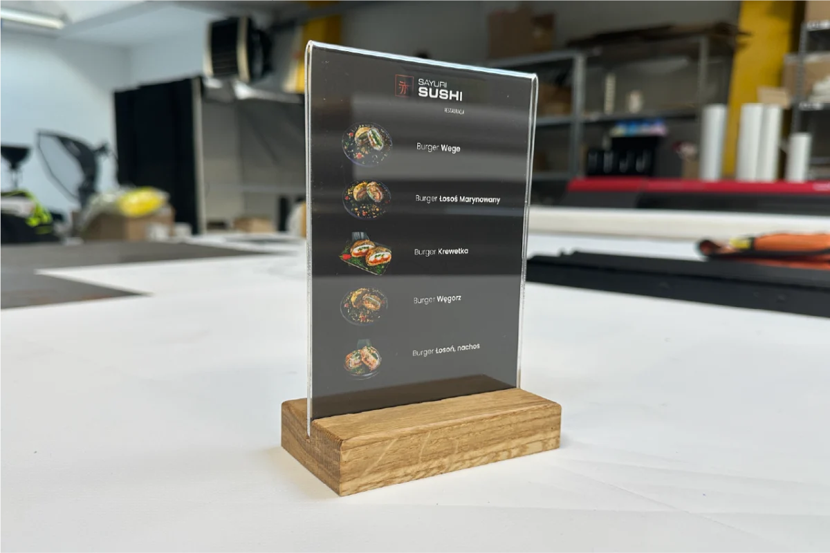 Chcesz, by Twoja oferta, menu lub ważna informacja była widoczna i łatwo dostępna dla każdego klienta? Projektujemy i produkujemy standy reklamowe, które są idealnym rozwiązaniem do ekspozycji na ladach, biurkach, w witrynach sklepowych czy na stolikach w restauracjach. Od wyboru trwałego materiału (akryl, PCV, drewno) i formatu, przez indywidualny projekt graficzny z Twoim logo i treścią, aż po precyzyjny druk i solidną podstawkę – dbamy o każdy detal. Stworzymy standy idealnie dopasowane do Twoich potrzeb, które skutecznie przekażą Twój komunikat, wzmocnią profesjonalny wizerunek i zachęcą do działania. Z nami Twoja marka będzie zawsze na pierwszym planie!